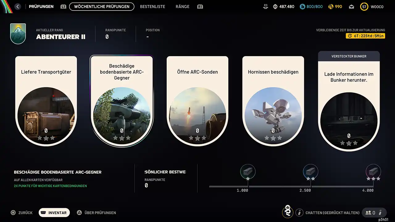 Ziel ist es nicht zwingend, Gegner schnell auszuschalten, sondern möglichst viel Schaden zu verursachen. Je mehr Schaden du an bodenbasierten ARC-Gegnern anrichtest, desto schneller schreitet die Prüfung voran.