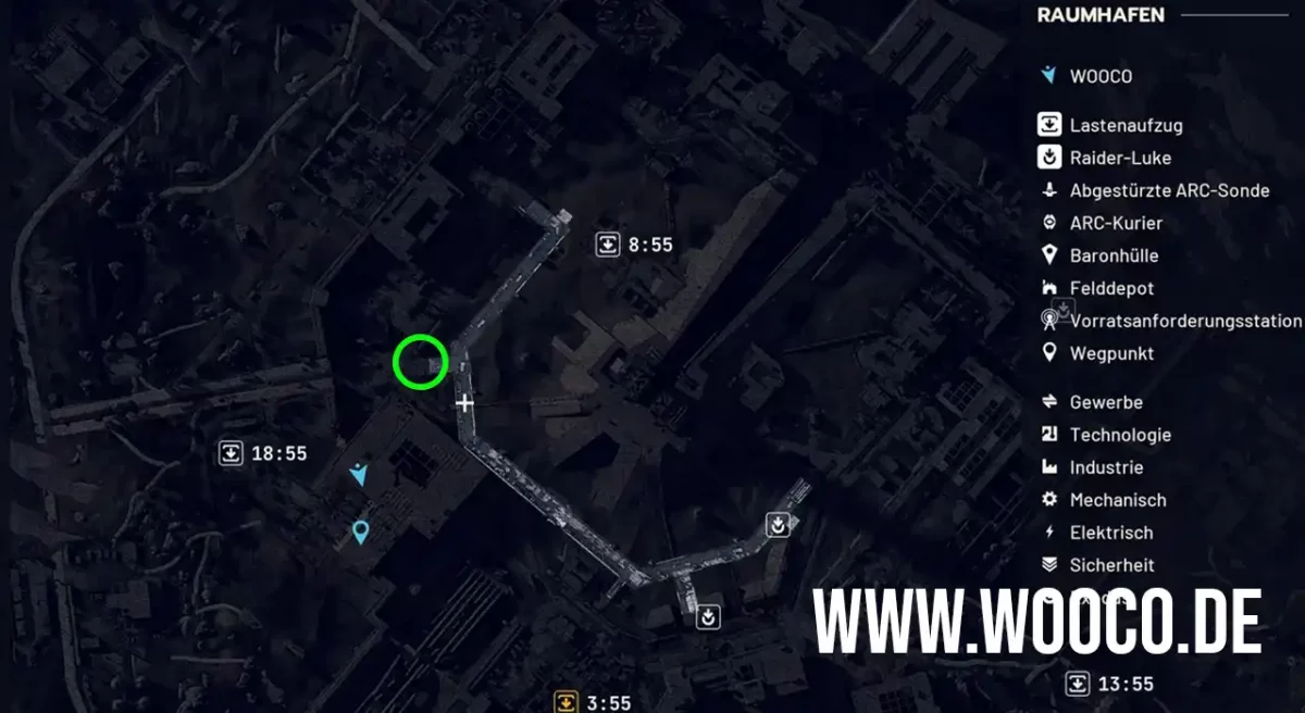 Das erste Ziel der Quest lautet, die südwestliche Lobby des Abfluggebäudes zu erreichen. Starte dafür ein neues Abenteuer auf der Map Raumhafen. Das Abfluggebäude ist auf der Karte markiert, du kannst dir den südwestlichen Bereich direkt selbst markieren und ansteuern.