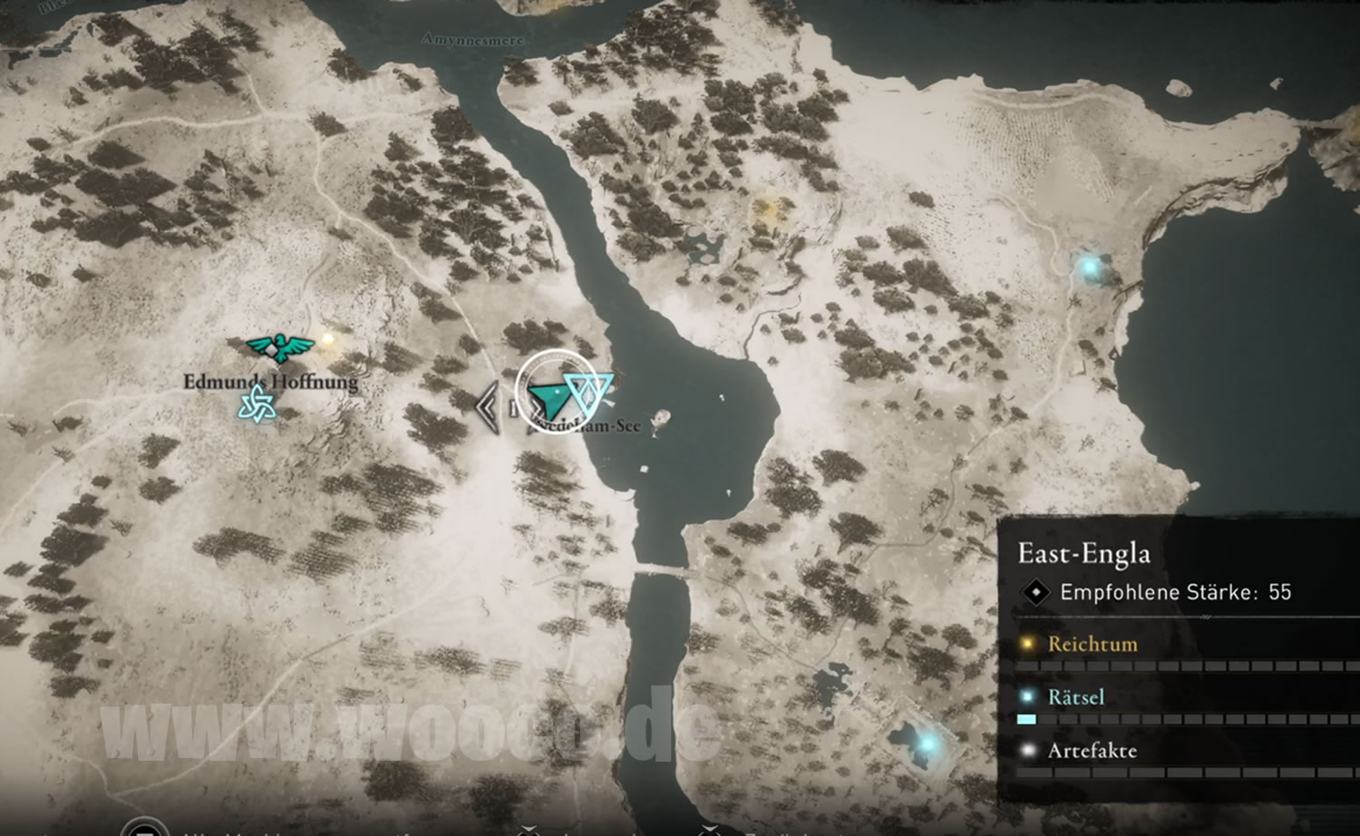 Ihr könnt das zweite Videofragment in East-Engla freischalten. Östlich von Beodoricsworth und Edmunds Hoffnung, am Rand des Gebiets.