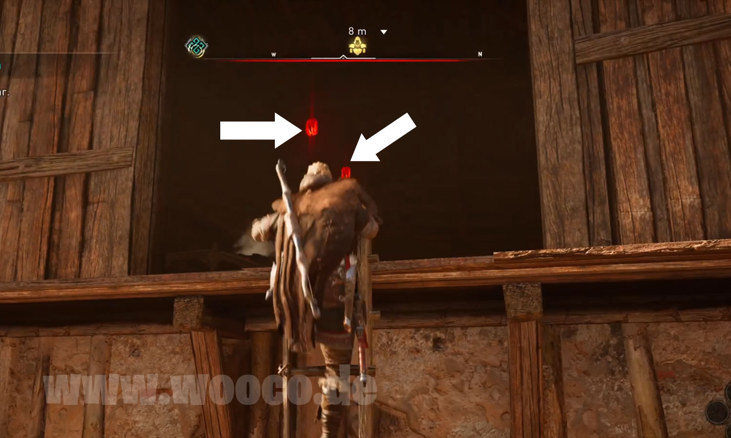Befindet sich im Bruderschaftshaus Ratae. Schaut in der Ruine nach einem Netz mit Steinen, welches an einem Haken hängt, schießt auf den Haken um den Boden zu durchbrechen. Unten findet ihr diese Armschienen.