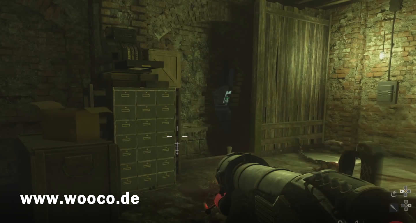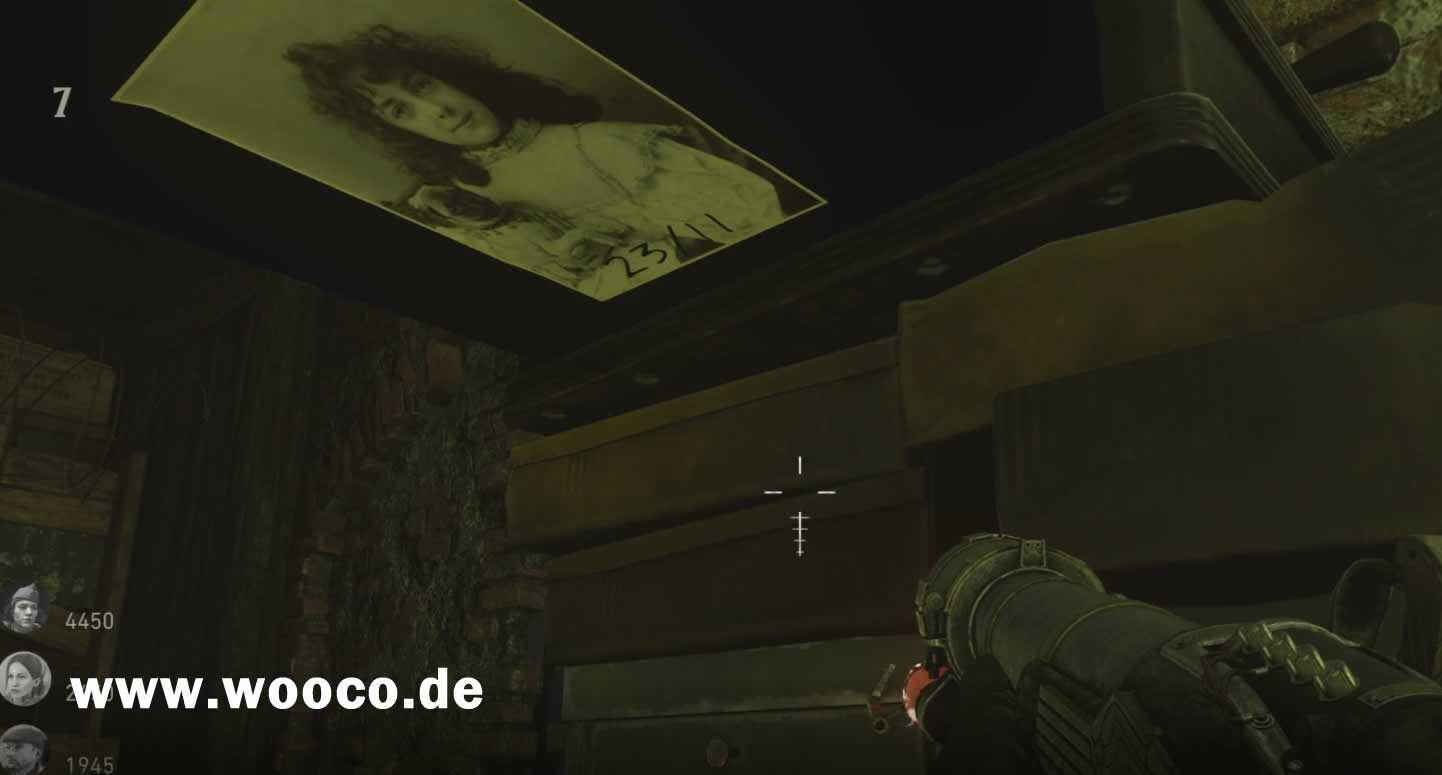 HINWEIS: Bevor ihr diesen Raum verlasst müsst ihr euch den nächsten Code für das Funkgerät mitnehmen! Neben der Maschine für die Wunderbüchse seht ihr eine Kasse oben auf einem Schrank stehen, schießt mit der Wunderwaffe darauf. Dann öffnet sich die Kasse und ihr seht ein Bild mit zwei Codes! Ihr benötigt diesen Code um den Schmuggler zu kontaktieren!