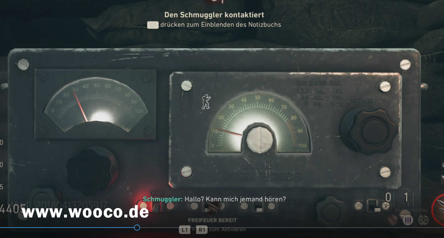 Wie oben beschrieben, ihr müsst den Code haben und den Schmuggler per Funkgerät kontaktieren, ihr erhaltet dazu eine Meldung und das Licht Leuchtet Grün. Wenn ihr das habt, geht in der Kirche nun an die Stelle gehen wo es zurück zum Theater geht, ihr findet dort eine Bodenplatte auf der GAS steht.