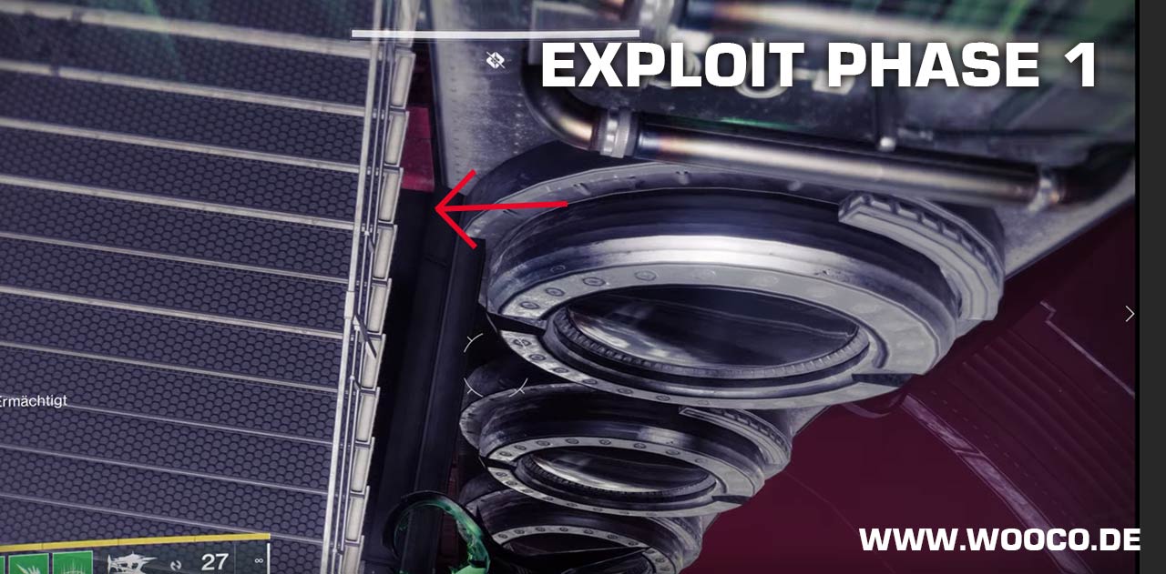 In der ersten Phase kann man auf einen Trick zurückgreifen: Man kann Direkt UNTER die Plattform gehen wo man die Kampfflagge aktiviert. Dazu müsst ihr nur seitlich an der Treppe nach unten Gleiten. Unterhalb der Treppe erleidet man KEINEN Schaden, durch die Stufen ist es möglich Schaden auszuteilen. Weiter unten zeigen wir euch auch ein Video dazu!