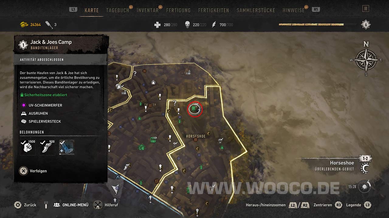 Wenn ihr die Platin TrophĂ€e freischalten wollt, ist es erforderlich das ihr alle Banditenlager findet und sĂ€ubert. Es ist auch Lohnenswert, ihr erhaltet dadurch Zugang zu weiteren Hemmstoffen und bekommt gute AusrĂŒstungen und neue Waffen.