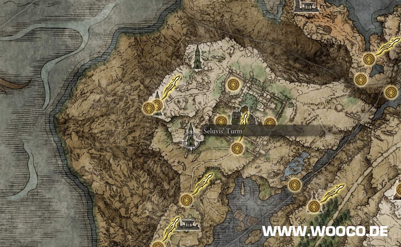 Dieser Turm ist nur Verfügbar wenn ihr die Königliche Ritterin Loretta im Haus Caria besiegt habt. Nachdem ihr sie zu Boden geschickt habt, erhaltet ihr Zugang zu dem Bereich mit den Drei Türmen (Drei Schwestern). Dort findet ihr Rannis Turm und Seluvis Turm.