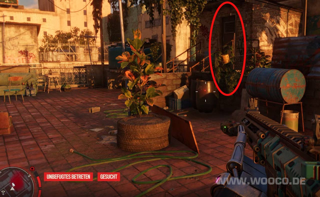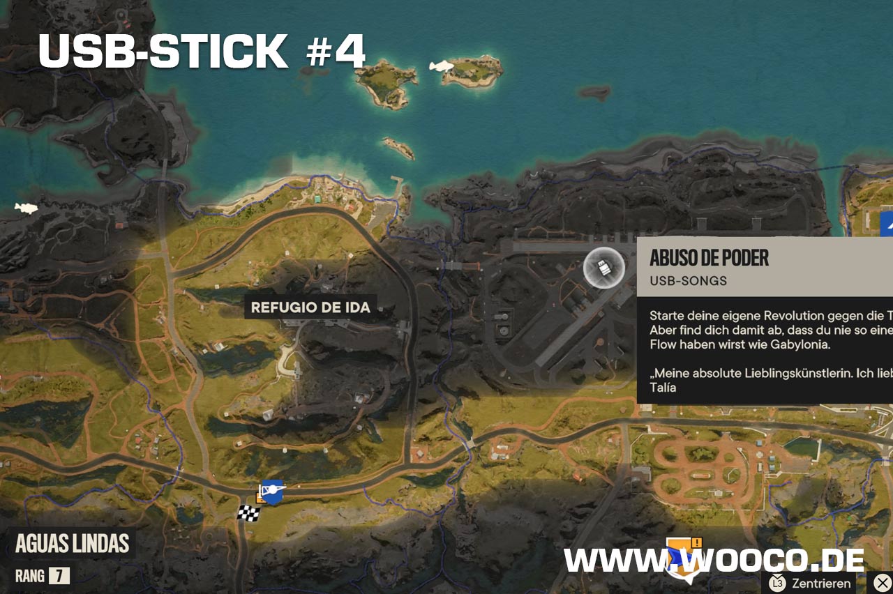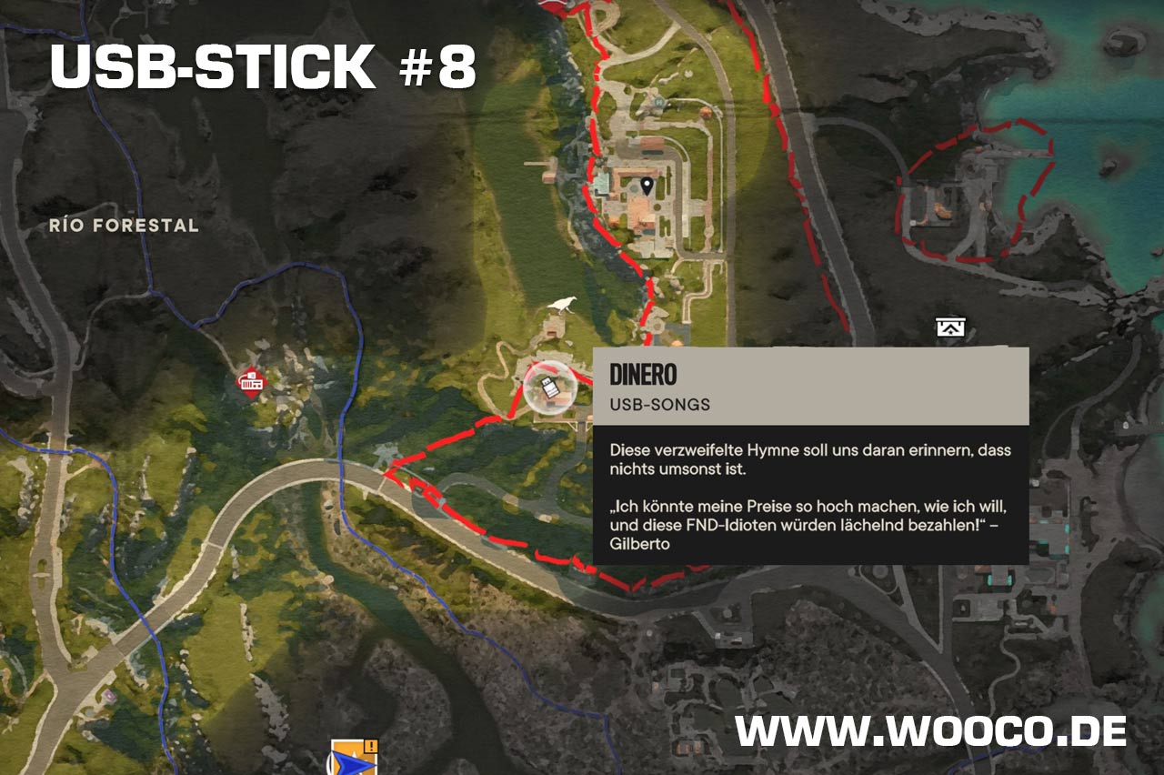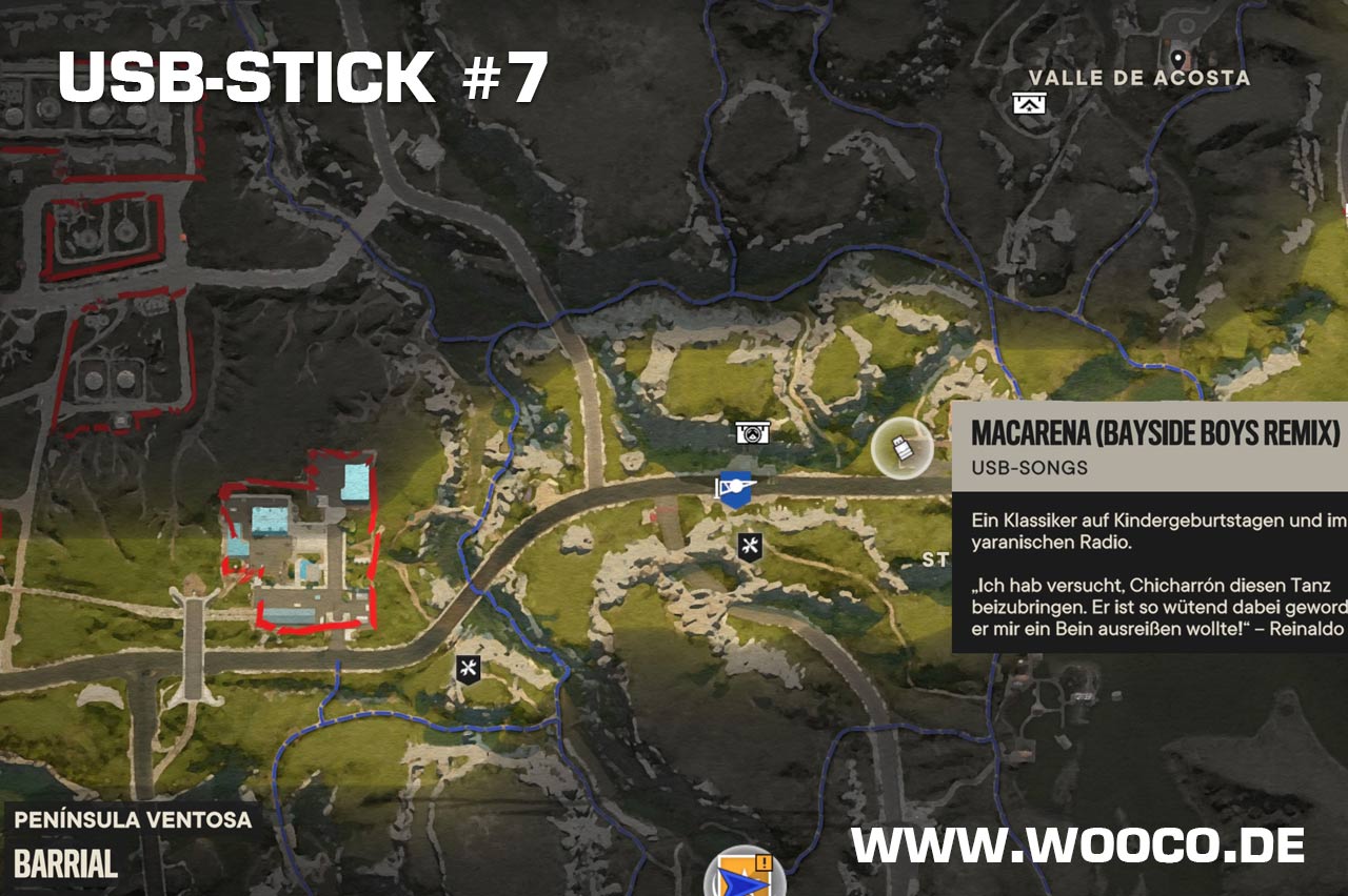 Begebt euch in den Südosten von Santuario, dort findet ihr den Ort Plantage Viviro Nueve. Durchsucht das Gebäude um den ersten USB Stick zu erhalten.