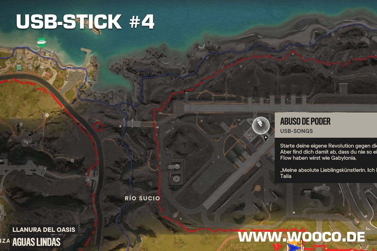 Dieses Lied findet ihr in einem unterirdischen Bunker. Geht zum USB-Song Standort auf der Karte, dort seht ihr ein Gebäude mit einem roten Funkturm daneben. Neben dem roten Funkturm befindet sich der Bunkereingang mit einer nach unten führenden Leiter. Klettert runter und geht durch den Bunker um den USB-Stick zu finden.