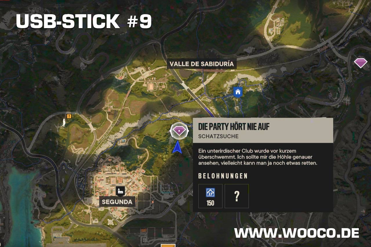 USB-Sticks werden auf der Minimap (HUD) durch ein weißes USB-Symbol gekennzeichnet, sobald ihr euch einem davon nähert. Wenn ihr euch die Suche ersparen wöllt, könnt ihr euch über das Ubisoft-Konto eine Karte Kaufen, welche dann alle USB-Sticks sofort auf der Karte Markiert, es kostet euch 300 Credits.