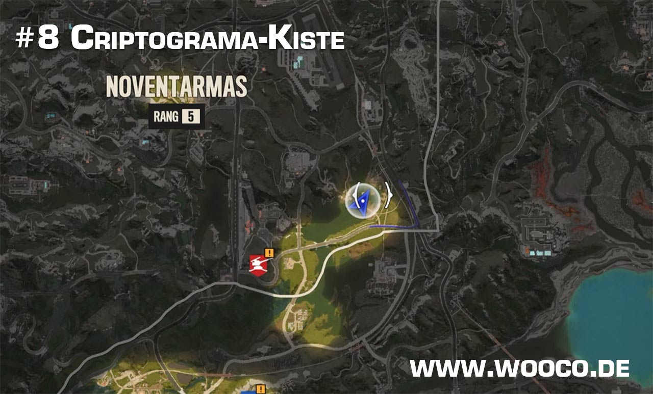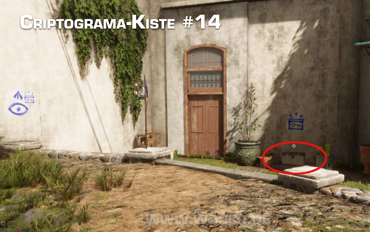 Insgesamt gibt es 15 Kisten und 30 Tabellen zu finden. Die Criptograma-Kisten werden auf der Karte Markiert, sobald ihr euch ihnen Nähert. Auf der karte erscheint dann ein Weißes Truhen-Symbol.