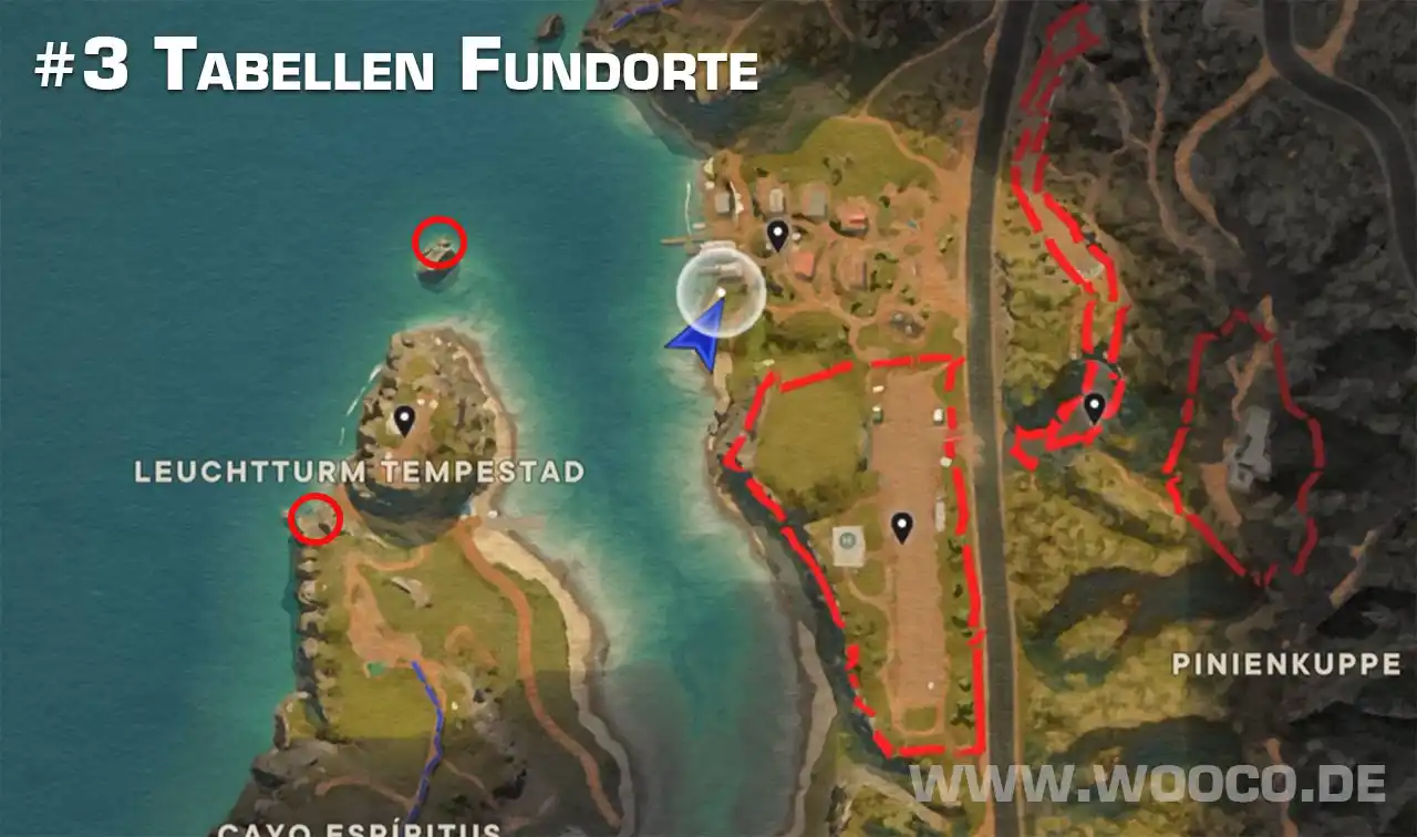 Die erste Karte befindet sich auf der Insel direkt nördlich der Truhe. Verwendet den Abholpunkt am Dock, um ein Fahrzeug zu holen. Die 2. Tabelle befindet sich unter Wasser, ihr müsst auf den Meeresgrund tauchen. Nicht weit weg von der 2. Insel.