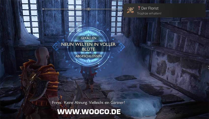 Neun Welten in voller Blüte ist ein optionaler Gefallen im Spiel. Wenn ihr nur die Geschichte mit Kratos spielen wollt, müsst ihr euch diese Aufgabe nicht antun. Wenn ihr aber alles erreichen wollt und die Platin Trophäe freischalten wollt, dann müsst ihr es tun!