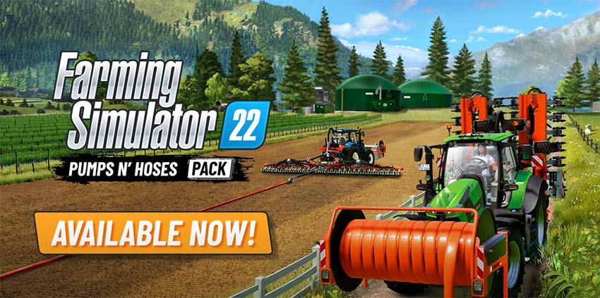 Die neue Erweiterung Pumps N‘ Hoses fügt dem Landwirtschafts-Simulator 22 Nabelsysteme für eine effiziente Gülleverschlauchung hinzu. Die Spielerweiterung bietet eine neue Möglichkeit, Felder zu düngen, indem Fans Hunderte Meter Schleppschläuche auslegen und mit Hochdruckpumpen kombinieren.