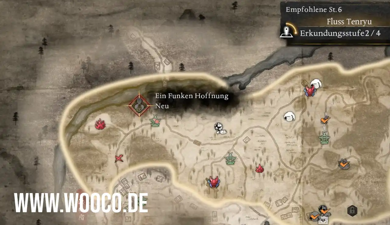 Die Quest beginnt im Westen von Fluss Tenryu, bei dem Schnellreisepunkt Hamamatsu-Tor in Nioh 3. Wenige Meter Nordwestlich davon, findest du den Questgeber. Interagiere mit der Leiche, um die Quest zu starten.