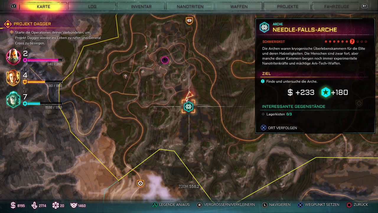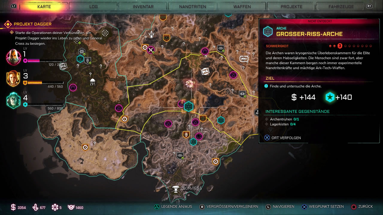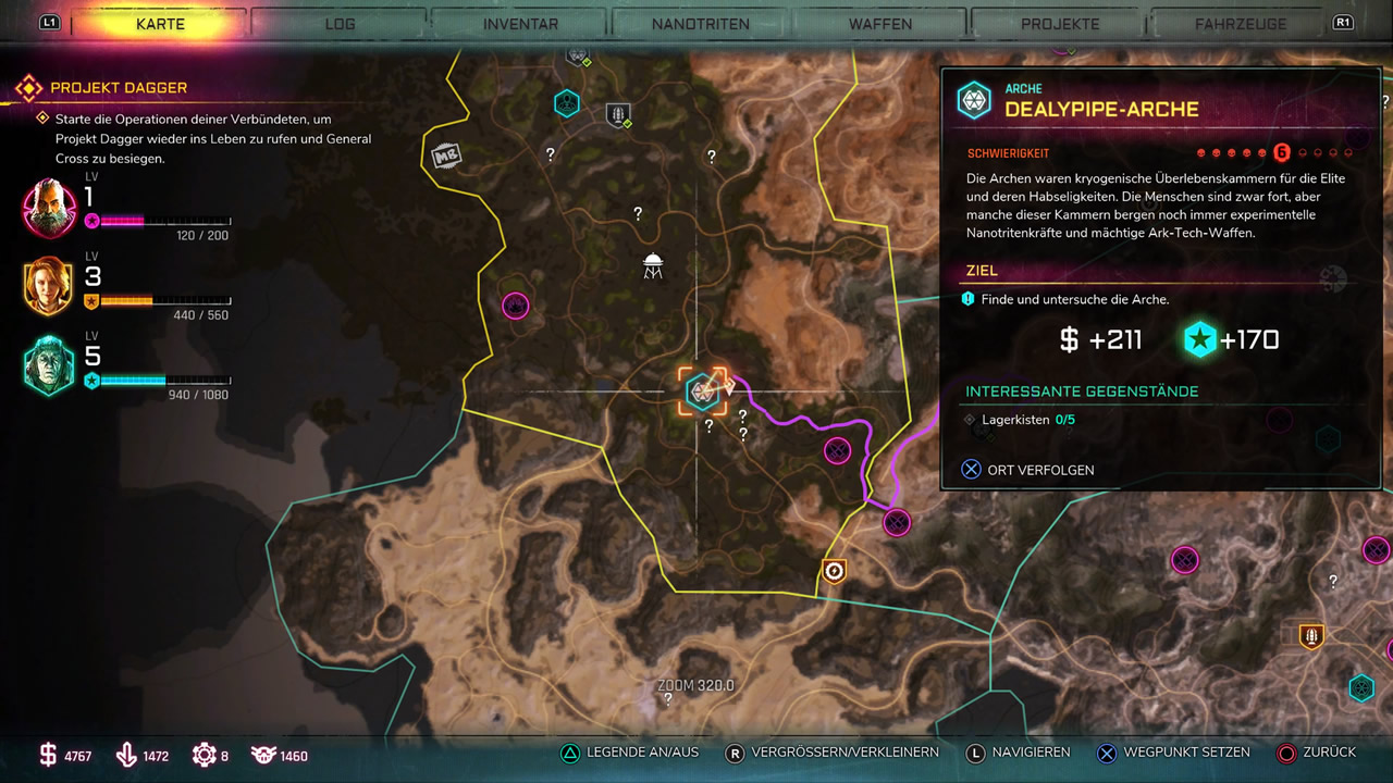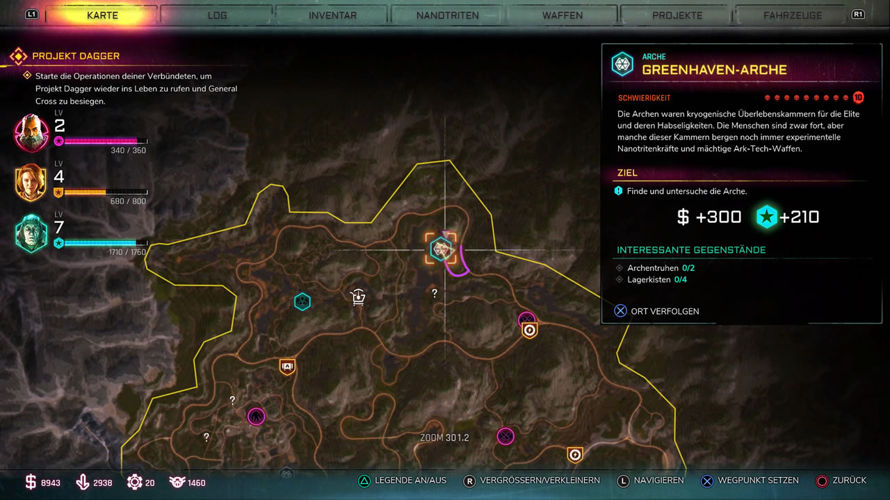 Es gibt Händler welche euch Karten verkaufen, durch diese karten könnt ihr versteckte Archen ausfindig machen. Nachdem ihr eine Karte gekauft habt wird die jeweilige Arche auf eurer Karte Markiert.