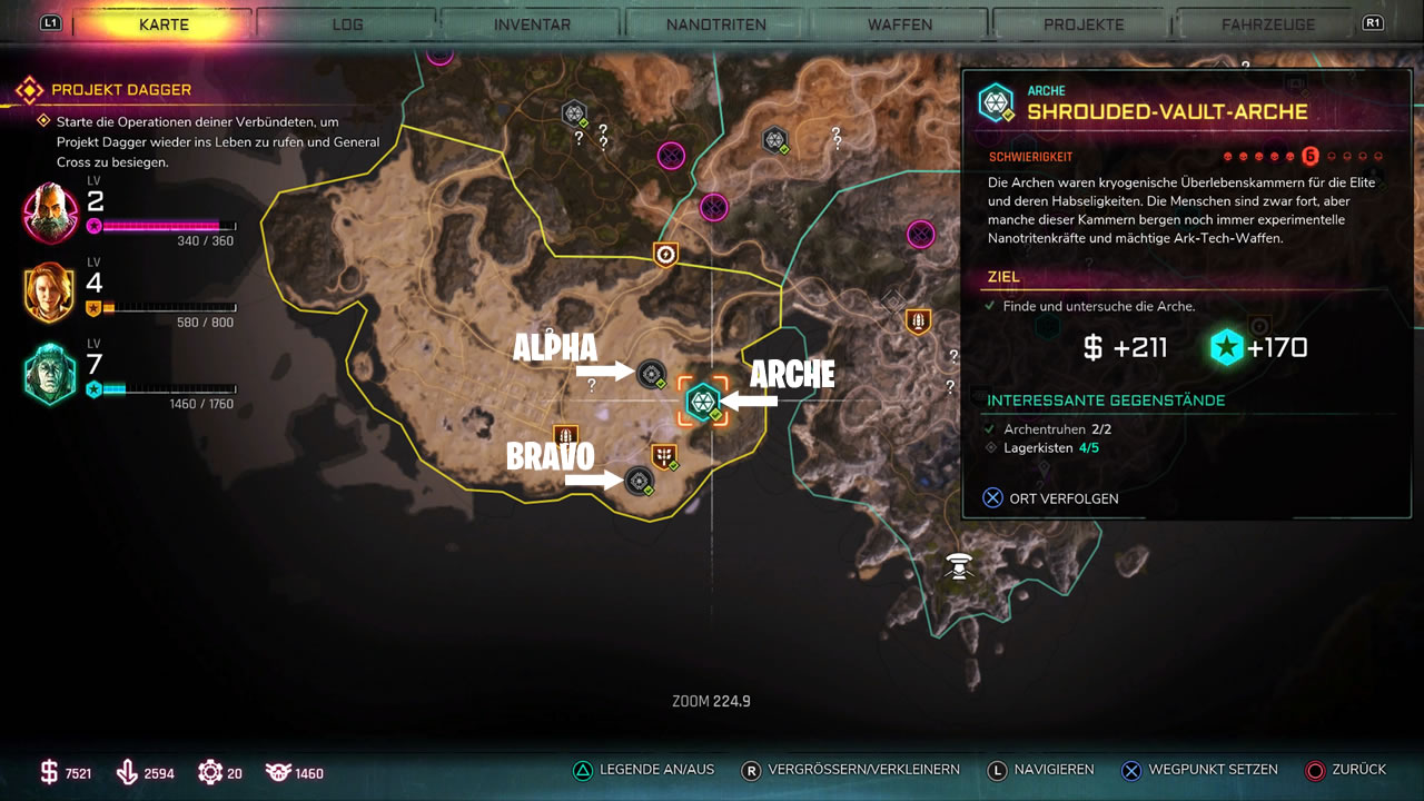 Um diese Arche betreten zu können müsst ihr zwei Pipelines folgen und jeweils einen Reaktor zerstören. Die Pipelines könnt ihr sehr gut erkennen, es sind die großen Rohre. Diese Rohre führen euch zu folgenden Orten: