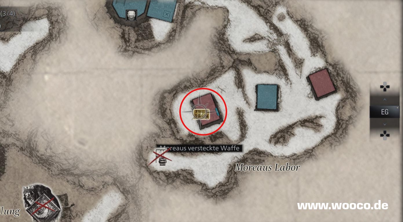 Fundort: Wenn ihr Moreau besiegt habt. Geht in Richtung Moreau’s Labor. Auf dem Hügel gibt es drei Hütten, in einer ist die Waffe.