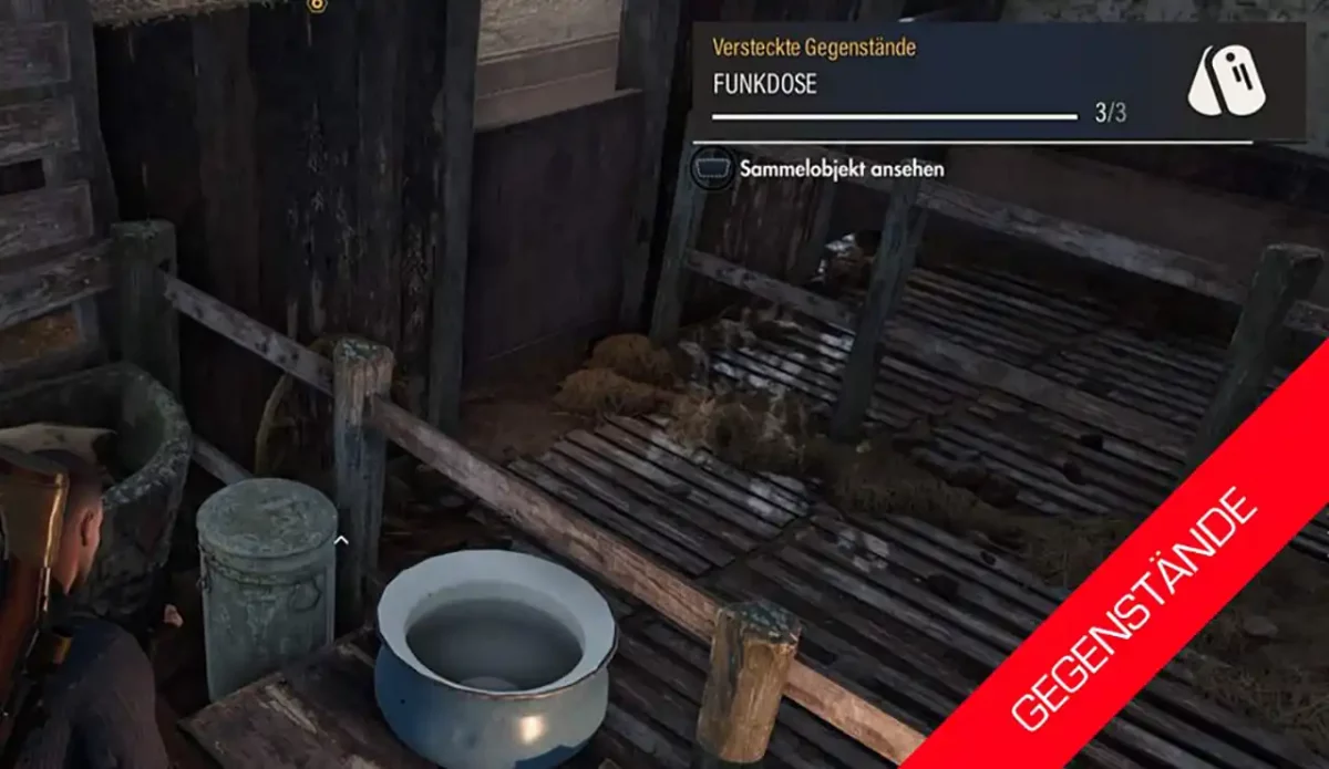 Welche Gegenstände du bereits gefunden hast und welche nicht, kannst du im Menü Nachschlagen. Gehe ins Menü, dann wähle die Optionen und den Wehrpass, dort siehst du alle Sammelobjekte.