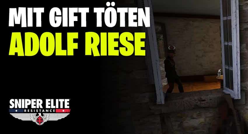 Dies ist wohl eine der schwersten Tötungsherausforderungen“ in Sniper Elite Resistance! In Mission 7, in Grund und Boden, steht Adolf Riese auf der Todesliste. Wenn ihr aber die B.A.R M1918 erhalten wollt, müsst ihr ihn auf eine bestimmte Art und Weise Töten: Töte Adolf Riese mit Gift.